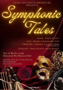 What’s on the programme: Dvorak: Othello Overture Fauré: Masques et Bergamasques Tchaikovsky: Romeo and Juliet Fantasy Overture Tchaikovsky: Variations on a Rococo Theme (cello soloist: Howard Lu) Tickets: Adult $25, Senior $20, Student/Child $10 available from Humanitix. Door Sales (with EFTPOS) if there are seats still available. More about the programme: Howard Lu, the winner of AYO’s 2025 Continue Reading